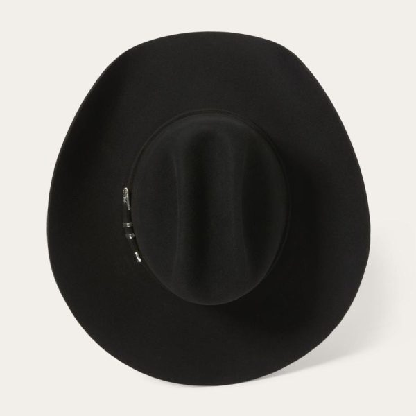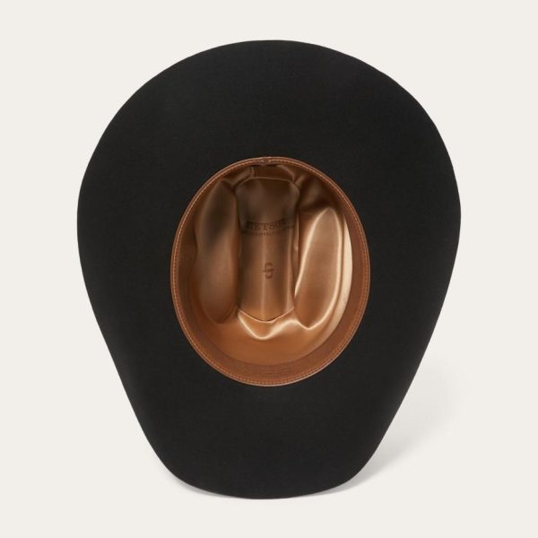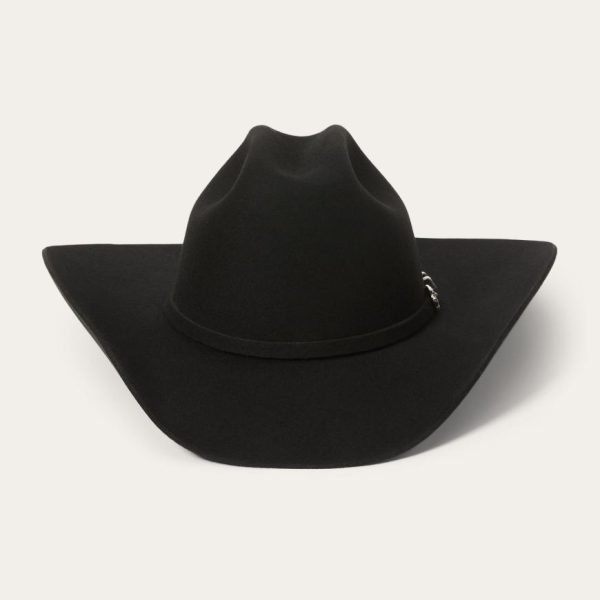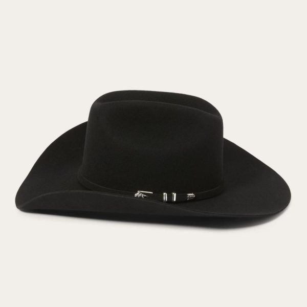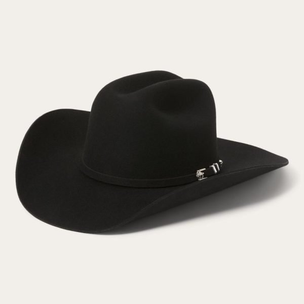 This Apache 4X is handmade in the U.S.A. of durable, weather-resistant 4X quality buffalo felt, which has a unique, pleasingly coarse texture. It features a 4″ brim and a 4 ⅝” regular oval cattleman crown finished with a matching self-felt band and three-piece silver-tone buffalo buckle set. A genuine leather sweatband and full satin liner ensure a secure and comfortable fit. Includes an original Stetson hat box.