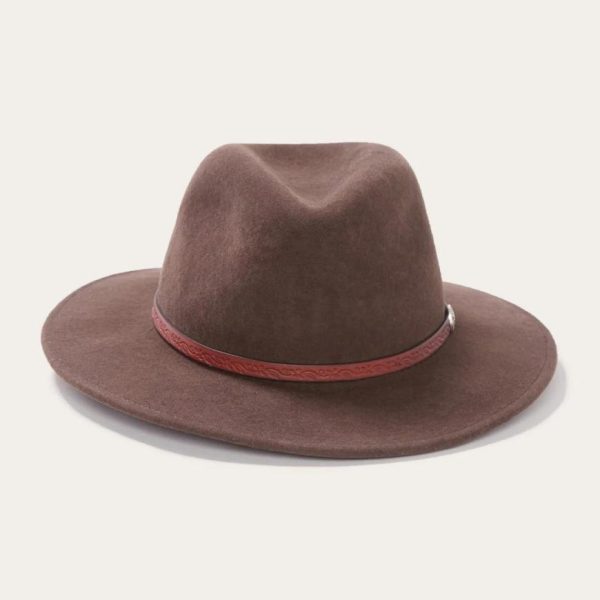 The Cromwell Outdoor Hat is constructed of crushable wool felt and features a center dent crown, interior dri-lex sweatband and leather hat band.