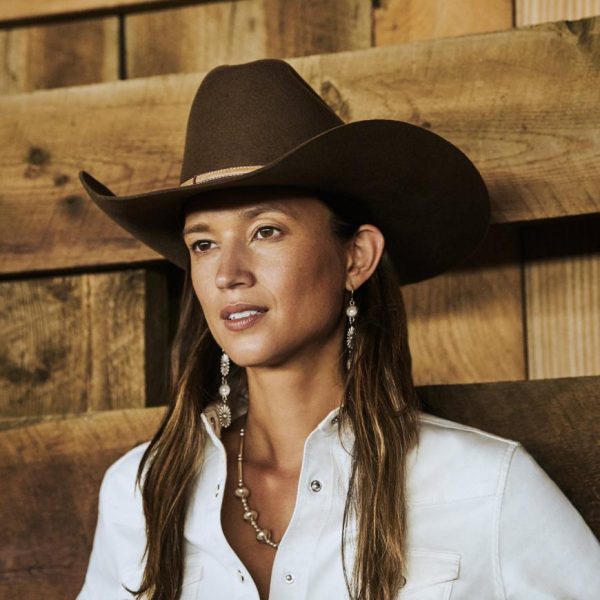 The Powder River 4X is handmade in the U.S.A. of durable, weather-resistant 4X quality buffalo felt, which has a unique, pleasingly coarse texture. Fit for long days on the range, it features a 4” brim and a 4 ⅝” cattleman crown finished with a rugged leather hat band with hair on hide overlay, antique gold-tone conchos and STETSON Buffalo pin. A genuine leather sweatband, and full satin liner provide a secure and comfortable fit. Includes an original Stetson hat box.