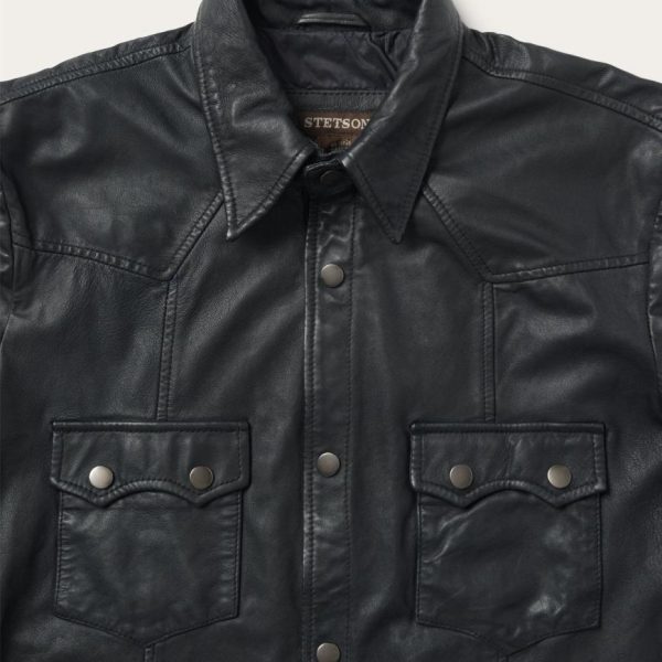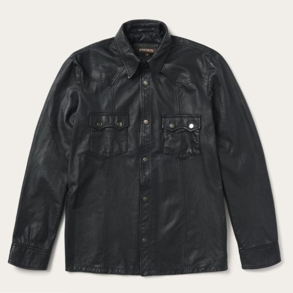 Men Jackets | Stetson Leather Western Shirt Jacket Black