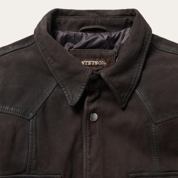 There’s only one Stetson and the same quality and attention to detail that goes into our world-famous boots and hats goes into our apparel. Always reliable in a pinch – keep this rugged leather shirt-jacket handy whether the wind picks up or a rain falls down. This no-nonsense layer has single-point front and back yokes and is finished with antique silver snaps on the placket and pockets.