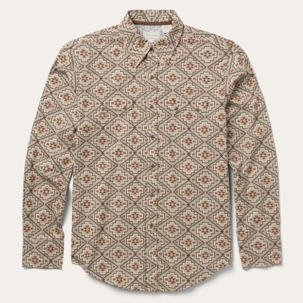 We set the standard for snap fronts. They’re not just Western-inspired, they’re imbued with a Western spirit. This modern fit shirt is crafted from crisp, breathable 100% cotton poplin that has been yarn-dyed for rich, lasting color and made to get better with age and wear. Featuring our exclusive all-over brown aztec print, it has a two-point curved back yoke, two-point curved pocket flaps, twill tape inside trim, subtle “S” and “Stetson” embroidery at the chest and right sleeve placket, a three-snap cuff and a classic snap front featuring opaque logo snaps.
