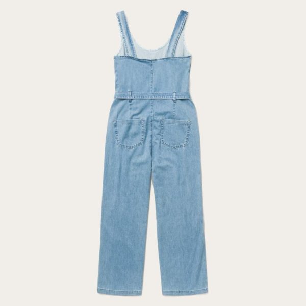 On trend in the desert or the city, this straight-leg jumpsuit features a straight low back with hidden buttons for strap length adjustment, back patch pockets and angled front pockets.