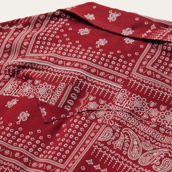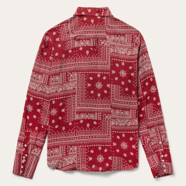This women’s long-sleeve Western-style shirt is crafted from soft, smooth 100% rayon and features our eye-catching all-over Red Bandana patchwork print. Authentic style features include a full snap front, single point deep curved front and back yokes, along with a single point left chest patch pocket. Lightweight and breathable, it has an easy, elegant fit that allows for freedom of movement.